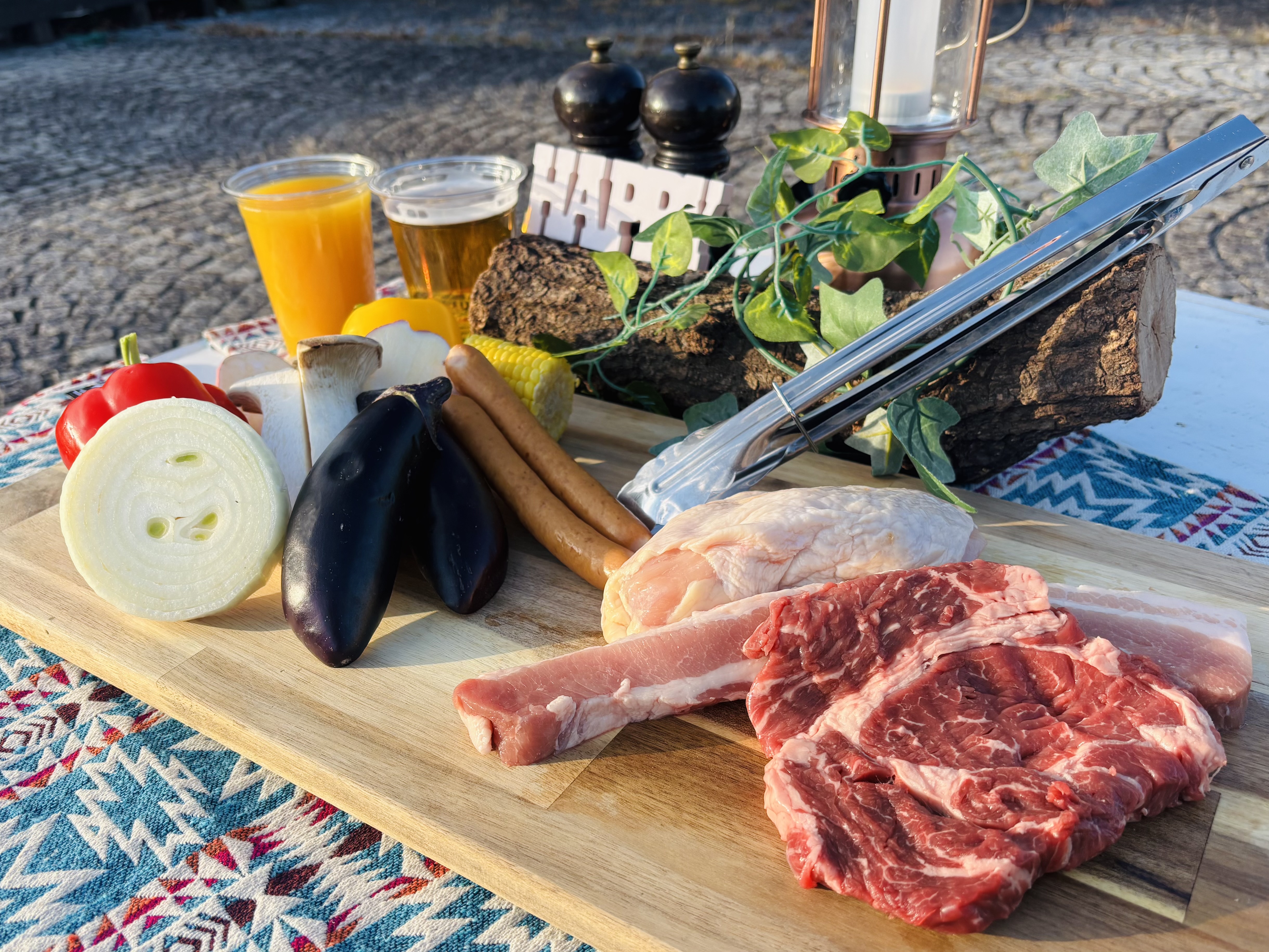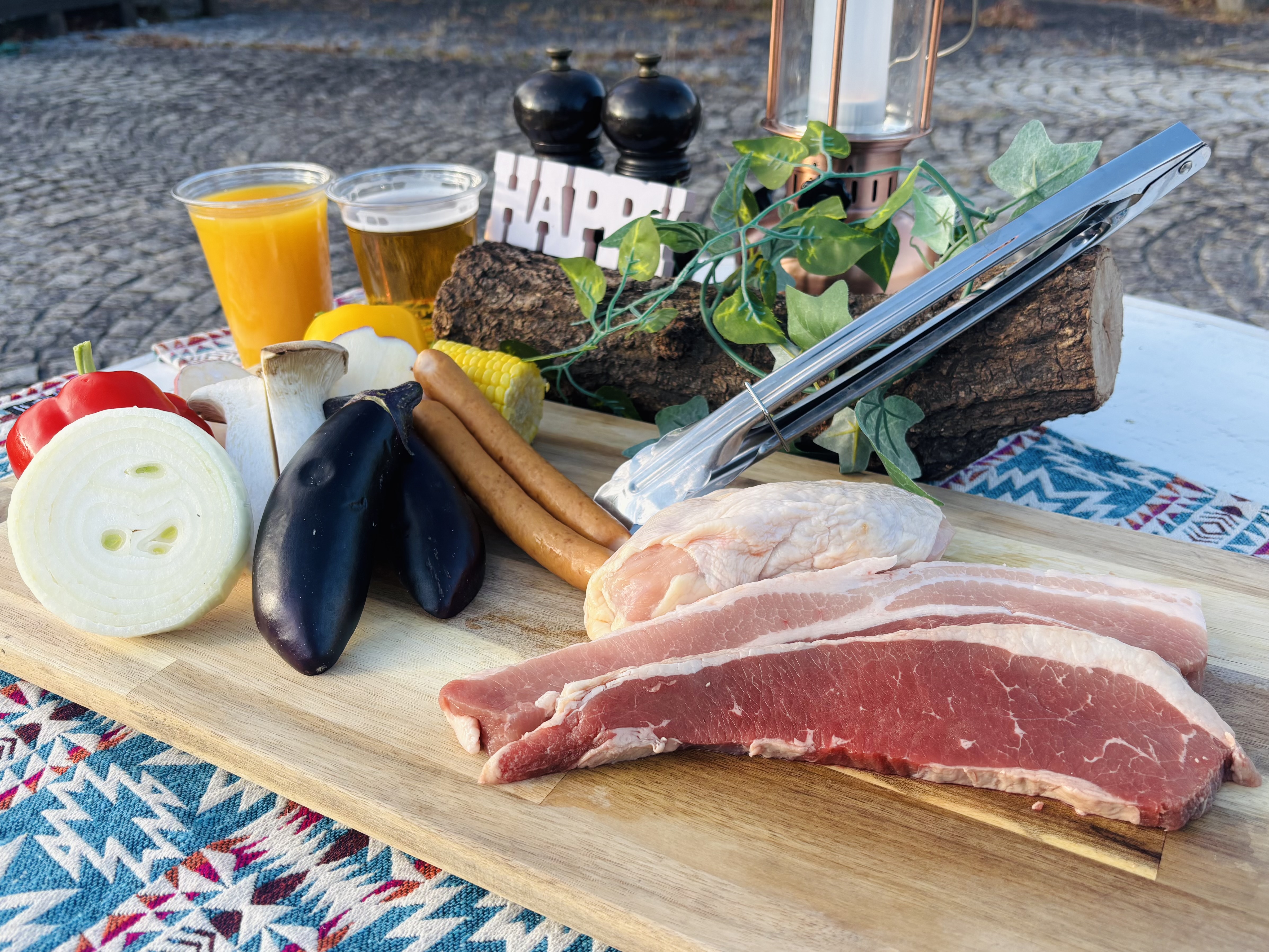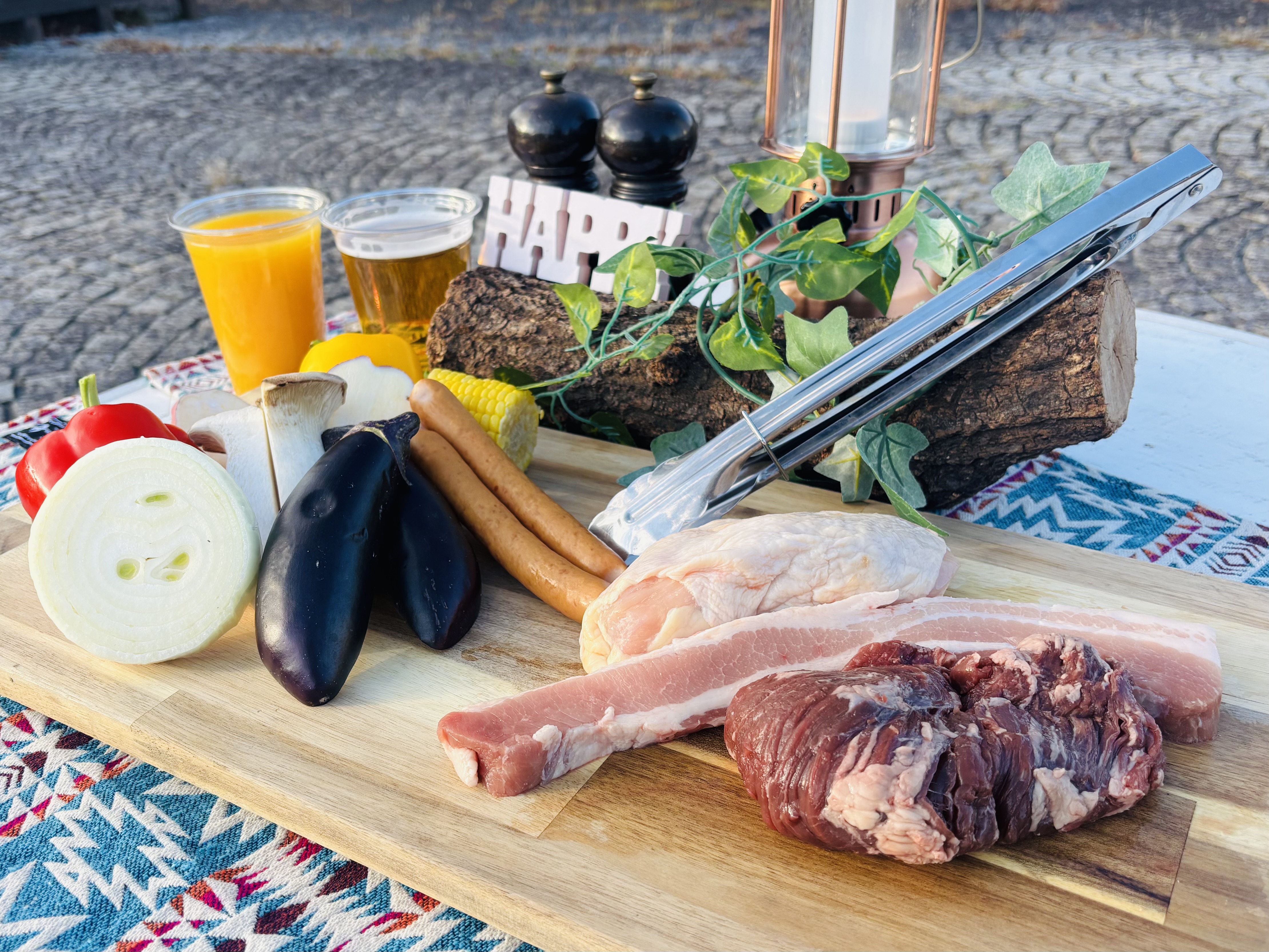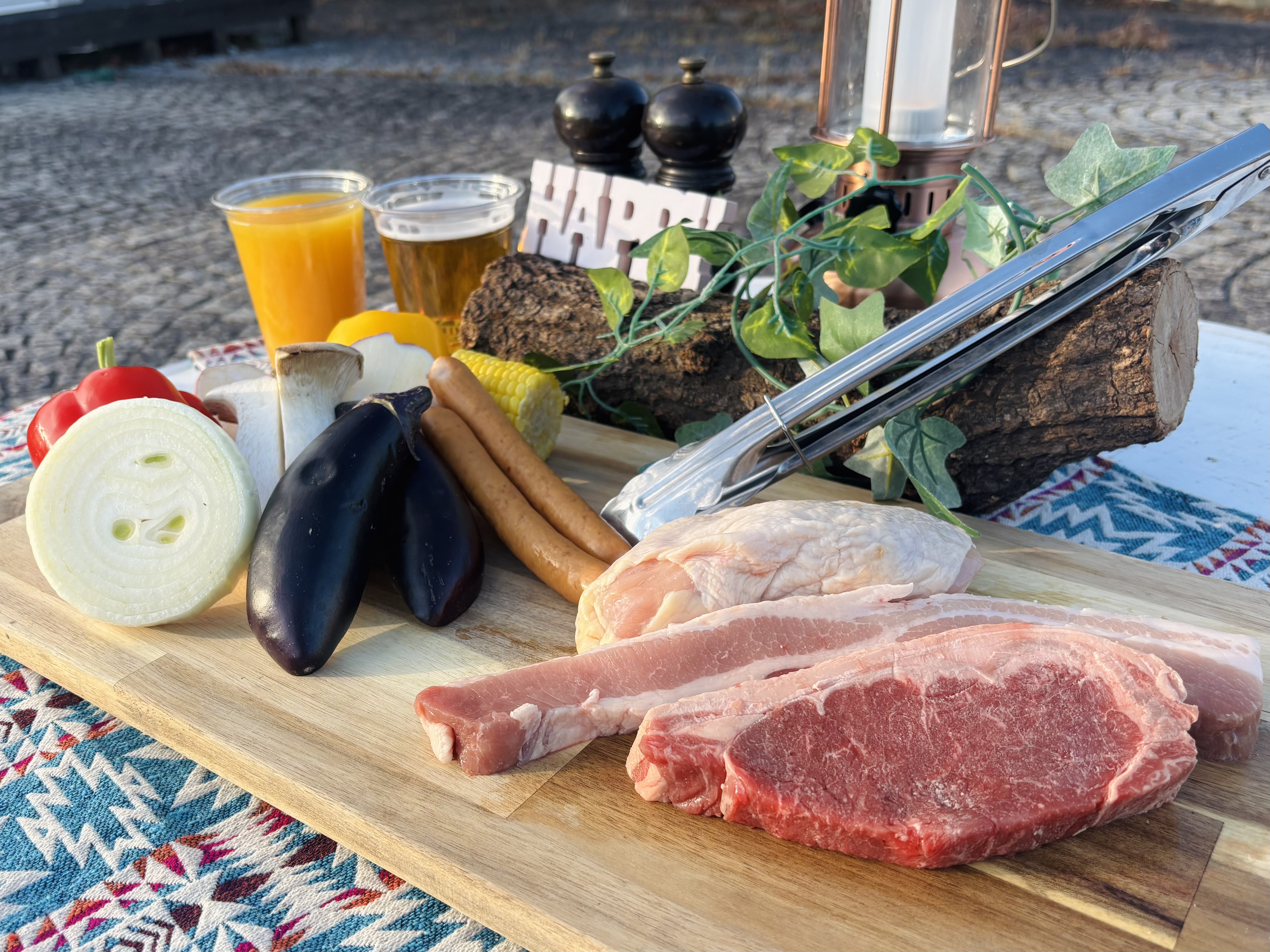 BBQ MENU A-SET (2名様~) 1人前 (画像は2名様用) ¥2,500 牛ブリスケット 豚バラ 鶏モモ ソーセージ 玉ねぎ サツマイモ トウモロコシ パプリカ 茄子 茸 B-SET (2名様~) 1人前 (画像は2名様用) ¥2,750 牛ハラミ 豚バラ 鶏モモ ソーセージ 玉ねぎ サツマイモ トウモロコシ パプリカ 茄子 茸 C-SET (2名様~) 1人前 (画像は2名様用) ¥3,100 牛サーロイン 豚バラ 鶏モモ ソーセージ 玉ねぎ サツマイモ トウモロコシ パプリカ 茄子 茸 D-SET (2名様~) 1人前 (画像は2名様用) ¥2,750 ブラックアンガス牛 肩ロース 豚バラ 鶏モモ ソーセージー 玉ねぎ サツマイモ トウモロコシ パプリカ 茄子 茸 E-SET (2名様~) 1人前 (画像は2名様用) ¥3,500 牛ブリスケット 牛ハラミ 牛サーロイン ソーセージ 玉ねぎ サツマイモ トウモロコシ パプリカ 茄子 茸 OPTION オプション キッズセット 1人前 ¥1,200 ハンバーグ 野菜セット ゼリー 棒付きフランクフルト 焼きおにぎり ※ソフトドリンク飲み放題850円 ※小学生のお子様までご注文いただけます。 シーフードセット 2人前 2人前 ¥4,000 ※ご注文は2人前ずつお受けいたします。 焼きそばセット 2人前 2人前 ¥1,800 ※ご注文は2人前ずつお受けいたします。 マシュマロ マシュマロ ¥1,000 ビスケット8枚 チョコレート付き ポップコーン ポップコーン ¥500 Tボーンステーキ 単品 単品 ¥3,500 ジンギスカンセット 2人前 2人前 ¥3,500 ※ご注文は2人前ずつお受けいたします。 お肉盛り合わせ お肉盛り合わせ ¥2,500 焼きおにぎり 小サイズ2個 ¥200 ★当日受付にてご注文をお受けいたします。 DRINK MENU 飲み放題 大人1名様 ¥2,200 小人1名様 ¥850 Draft Beer 生ビール サントリー ザ・プレミアム・モルツ Suntory The Premium Malt’s ¥600 サントリー ザ・プレミアム・モルツ(香るエール) Suntory The Premium Malt’s ale ¥600 ALL FREE ノンアルコールビール Non-alcohol beer taste drink ¥500 SHO-CHU 焼酎 大隅<芋> Osumi ¥600 わんこ<麦> Wanko ¥600 Cocktail カクテル all ¥600 ジントニック Gin Tonic モスコミュール Moscow Mule マリブコーラ Malibu cola カシスオレンジ Cassis orange テキーラサンライズ Tequila Sunrise カシスソーダ Cassis Soda ファジーネーブル Fuzzy Navel Highball ハイボール ※飲み放題のハイボールは角ハイボールとなります。 メーカーズクラフトハイボール Maker’s Craft Highball ¥600 Plum wine 梅酒 山崎蒸留所貯蔵 焙煎樽仕込み梅酒 Plum liqueur matured in the toasted cask in YAMAZAKI ¥600 Wine ワイン グラスワイン赤 Glass wine red ¥600 グラスワイン白 Glass wine white ¥600 SOUR サワー レモンサワー Lemon sour ¥600 赤玉パンチ Akadama punch ¥600 プレーン Plain sour ¥600 グレープフルーツサワー Grapefruit sour ¥600 トマトサワー Tomato sour ¥600 しょっぱい梅サワー Plum sour ¥600 Tea 紅茶/お茶 紅茶(ホット/アイス) Tea(Hot / Iced) ¥400 ウーロン茶(アイス) Oolong tea(Iced) ¥400 ジャスミンティー(ホット/アイス) Jasmine tea(Hot / Iced) ¥400 Soft Drinks ソフトドリンク オレンジジュース Orange Juice ¥400 紅茶花伝 アイスティー Iced tea ¥400 ジンジャーエール Ginger ale ¥400 コカ・コーラ Coca-Cola ¥400 カルピスウォーター Calpis water ¥400 カルピスソーダ Calpis soda ¥400 Coffee コーヒー ブレンドコーヒー Blend Coffee ¥400 アメリカンコーヒー American Coffee ¥400 アイスコーヒー Iced Coffee ¥400